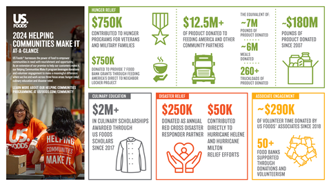 US Foods kicked off 2024 announcing an increased investment of nearly $2 million to support the company’s expanded Helping Communities Make It programming. The additional dollars enabled new partnerships and innovative hunger-relief initiatives including: