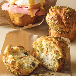 - Chef’s Line® Garlic and Herb Cheese Filled Muffin: Filled with Boursin ™ cheese, infused with garlic and herbs and topped with zucchini, tomatoes, pumpkin seeds, chives, parsley and dried garlic, these muffins are ideal for breakfast, brunch or a gourmet side dish. Enjoy it solo, use it for sandwiches or pair with soups, salads or entrées across menus.